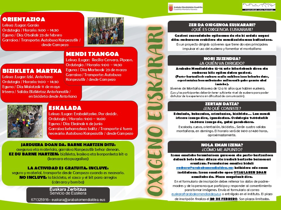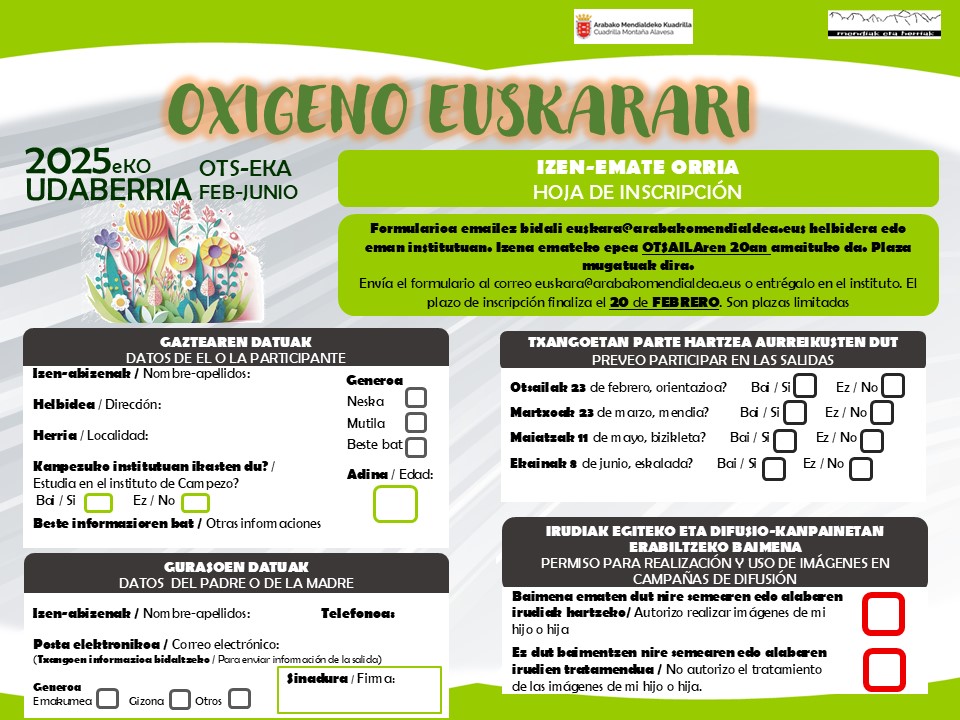 Izena emateko epea OTSAILAREN 20ra arte. Plaza mugatuak.